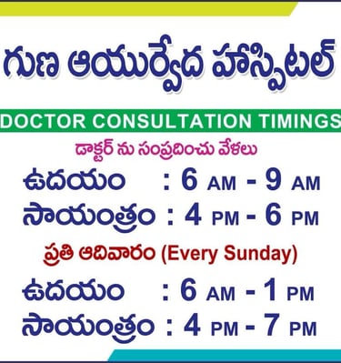 Guna Ayurveda Hospital © 2025. All rights reserved. Developed by Vishwas Kakkireni